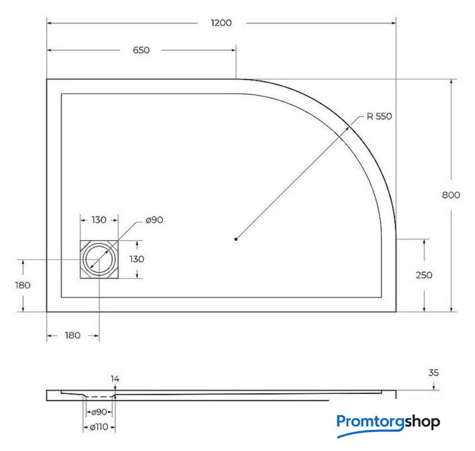 Душевые поддоны BelBagno BelBagno TRAY-MR-UNO-RH-120/80-550-35-W-R-CR 120x80 Код товара: 9796320