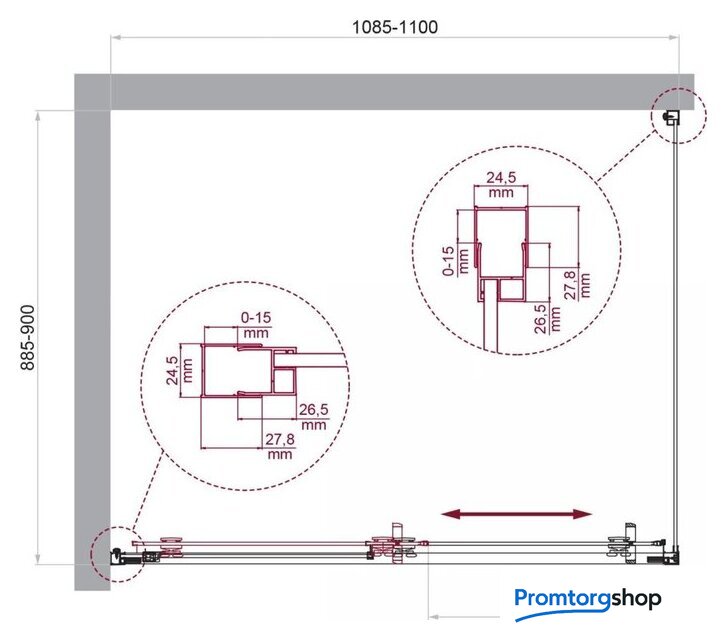 душевой уголок, ширина 110 см