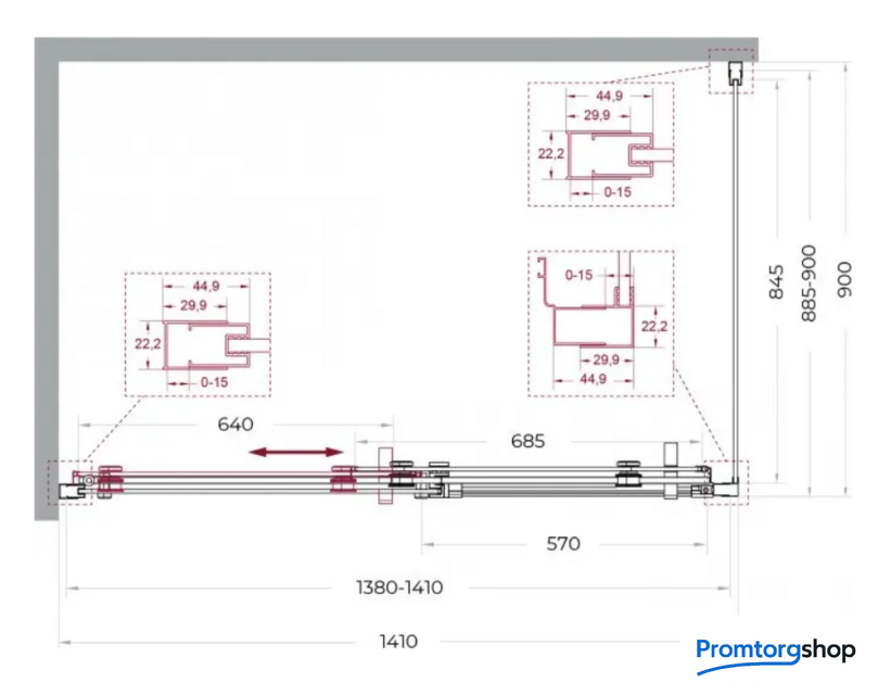| Тип раскрытия дверей | раздвижная, 1 створка. Тип роликов одинарные |