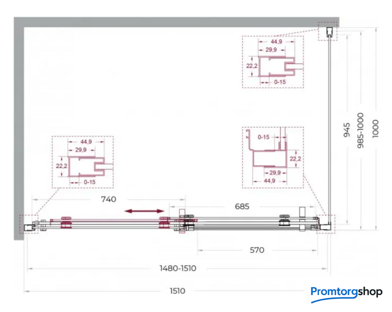 | Тип раскрытия дверей | раздвижная, 1 створка. Тип роликов одинарные |