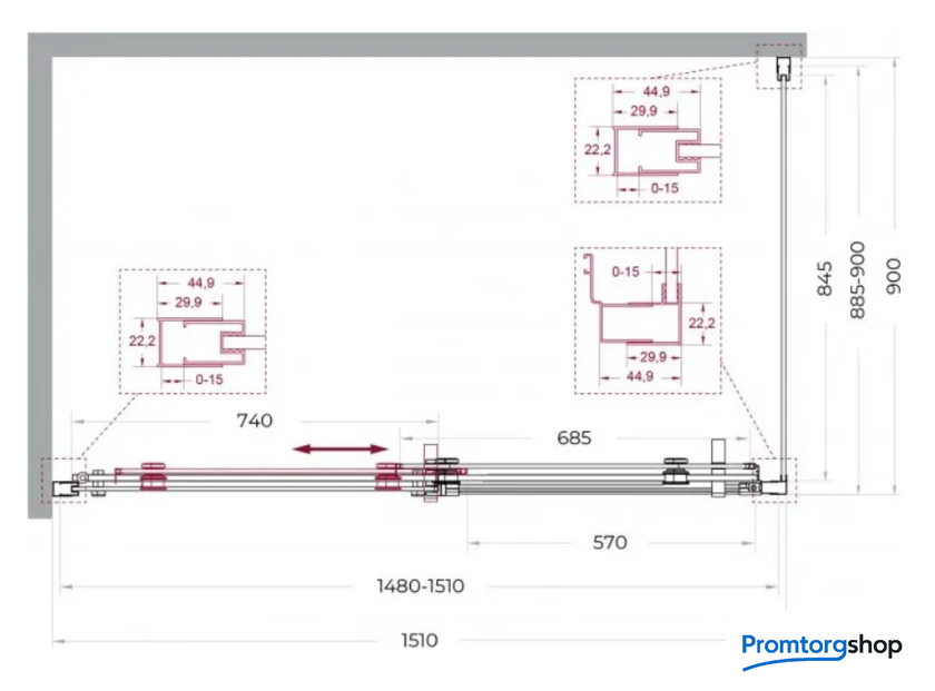 | Цвет профиля | хром серебристый. Материал профиля дверей/стенок алюминий |