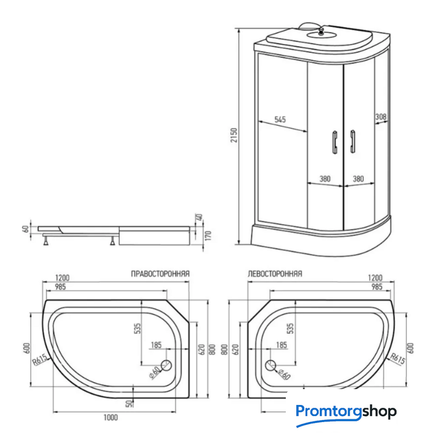 | Форма поддона | закругленный. Расположение слива в углу. Форма слива круг. Диаметр слива 5 см |