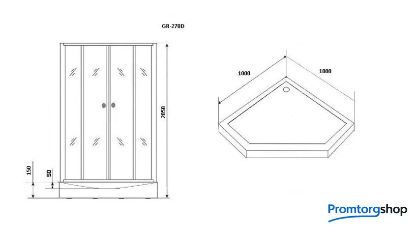| Форма поддона | пятиугольный |