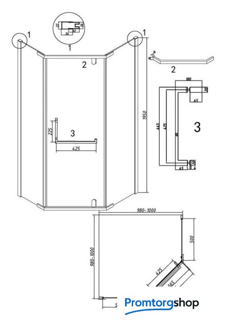 | Форма поддона | пятиугольный |