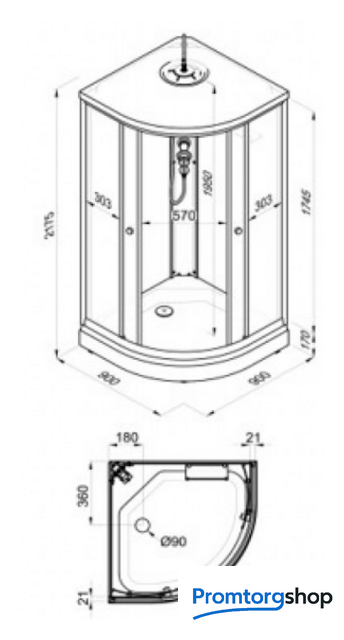 | Форма поддона | закругленная. Расположение слива в углу. Форма слива круг. Диаметр слива 9 см |