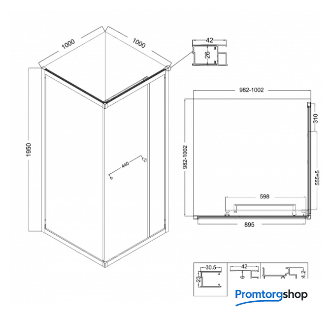 | Цвет профиля | хром глянцевый. Материал профиля дверей/стенок алюминий |