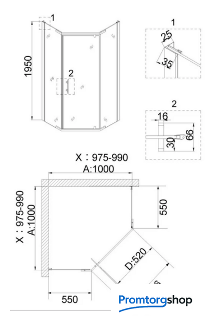 | Тип | душевой уголок. Пятиугольный душевой уголок размещается вдоль смежных стен ванной комнаты. Ограждение крепится при помощи регулируемого стенового профиля из алюминия. Этот металл устойчив к коррозии. Также он легкий и прочный, поэтому как нельзя лучше подходит для производства душевых ограждений. Дополнительную защиту металла от влаги дает порошковое окрашивание. В этом душевом уголке дверной проем образует одностворчатая дверь распашной конструкции с нижеопорными стальными петлями. Они более надежные, не позволяют двери проседать и реже требуют обслуживания. |
