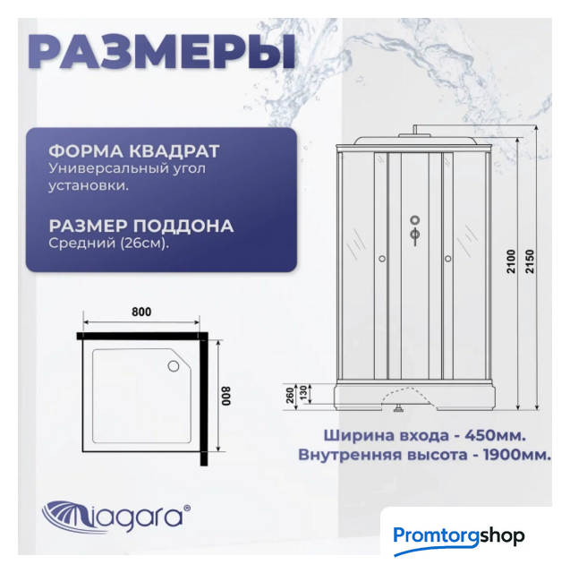 | Форма поддона | квадратный. Расположение слива в углу. Форма слива круг. Диаметр слива 5 см |