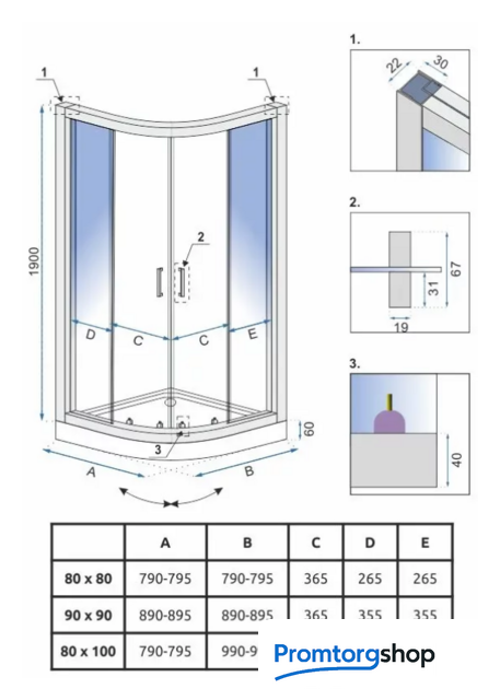 | Тип раскрытия дверей | раздвижные, 2 створки |