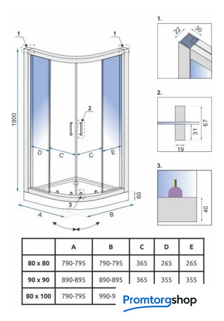 | Форма поддона | четверть круга |
