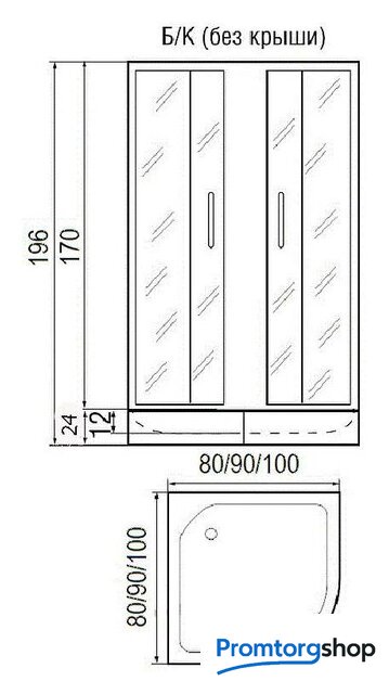 | Тип раскрытия дверей | раздвижная, 2 створки. Ролики двойные (верхние), одинарные (нижние) |