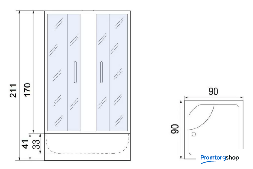 | Форма поддона | квадратная. Расположение слива по стороне. Форма слива круг |