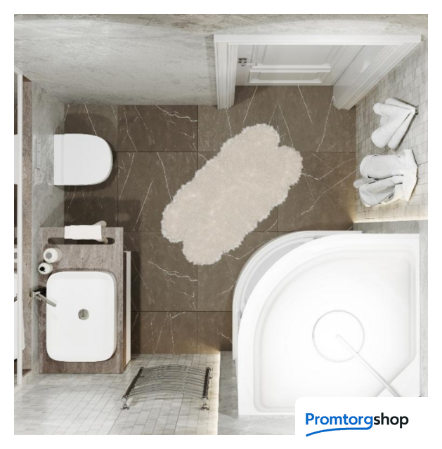 Форма поддона | четверть круга. Расположение слива в углу. Форма слива круг |