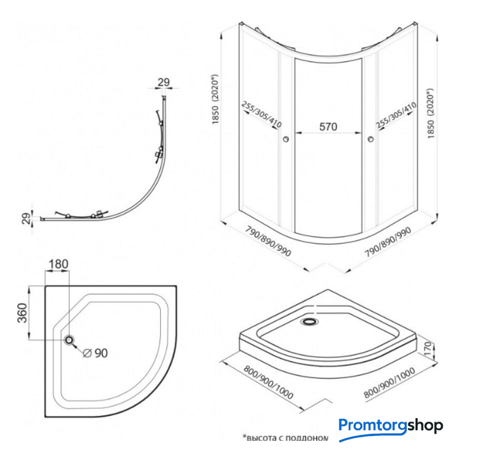 Форма поддона | четверть круга |