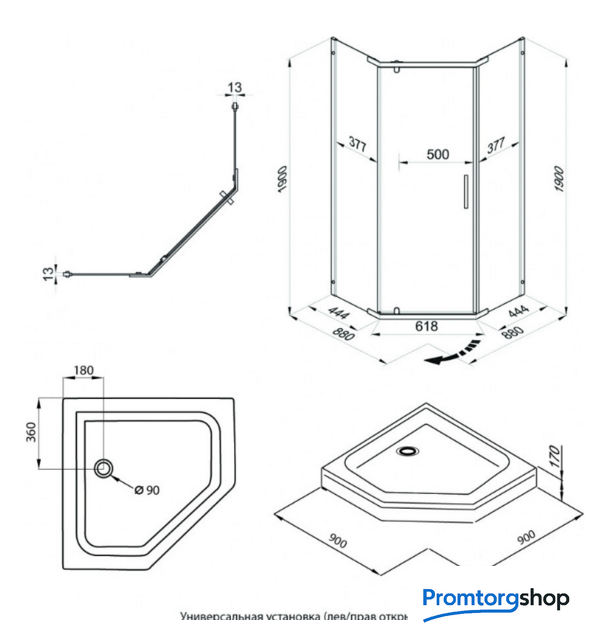 Тип поддона | низкий. Расположение слива по стороне. Форма слива круг.Диаметр слива 9 см |