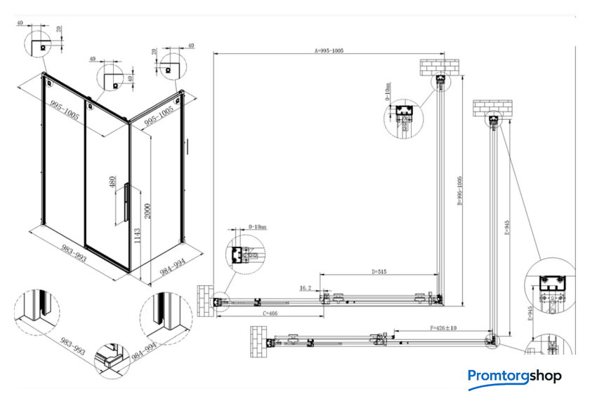 | Тип раскрытия дверей | развижная, 1 створка. Доводчики закрывания двери, ручка 480мм Металлическое тело роликов |