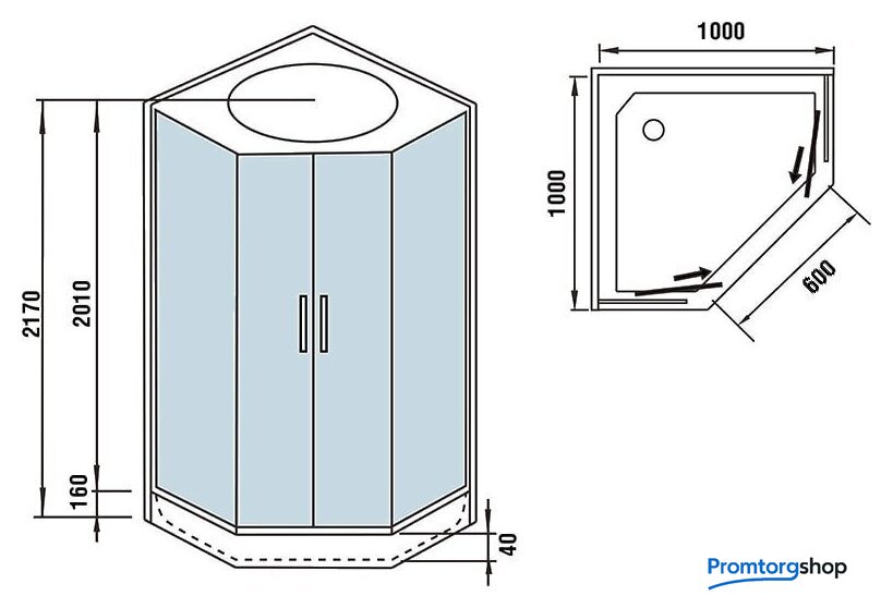 | Форма поддона | пятиугольный |