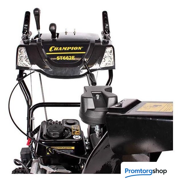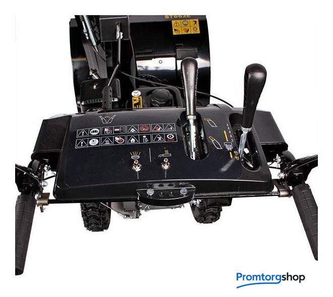 | Комплектация | - Устройство;- Руководство по эксплуатации;- Ключ свечной;- Рукоятки рабочие с панелью в сборе;- Стойка рабочих рукояток;- Желоб выброса снега со стойкой и механизмом поворота в сборе;- Вал управления поворотом желоба;- Тяга переключения передач;- Комплект крепежа;- Ручка рычага переключения передач;- Ручка рычага управления дефлектором;- Лопатка для прочистки желоба;- Пальцы срезные со шплинтами;- Инструкция;- Гарантийный талон. |