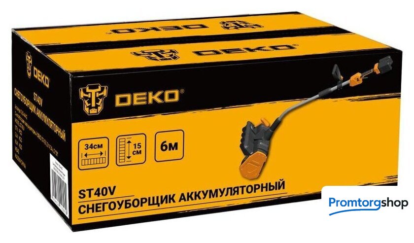 | Комплектация | - Снегоуборщик – 1 шт.- Аккумулятор 4,0 Ач – 2 шт.- Двойное зарядное устройство – 1 шт.- Руководство по эксплуатации- Коробка |