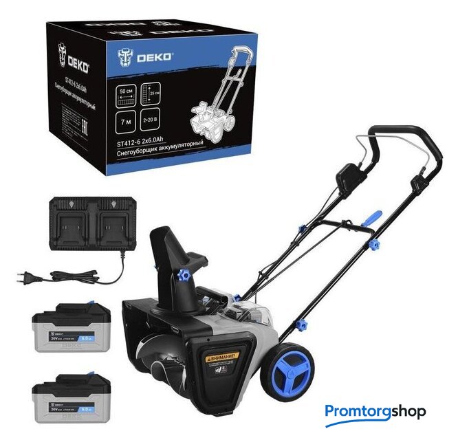| Комплектация | - Снегоуборщик – 1 шт.- Аккумулятор 6,0 Ач – 2 шт.- Двойное зарядное устройство – 1 шт.- Руководство по эксплуатации- Коробка. |