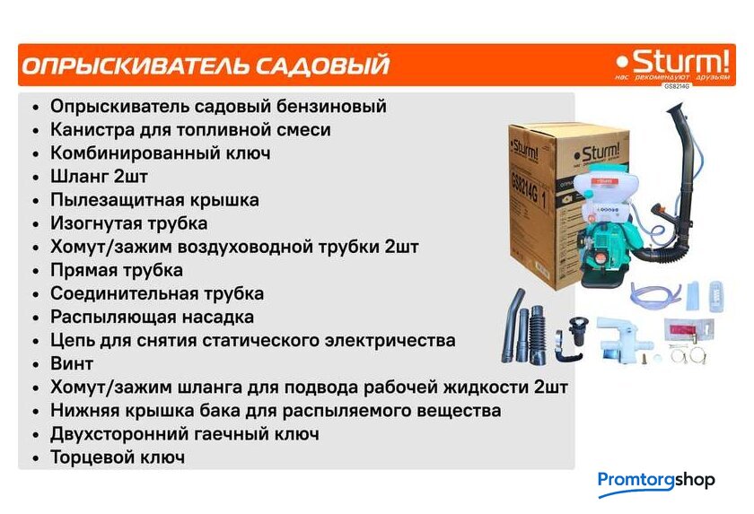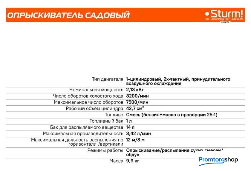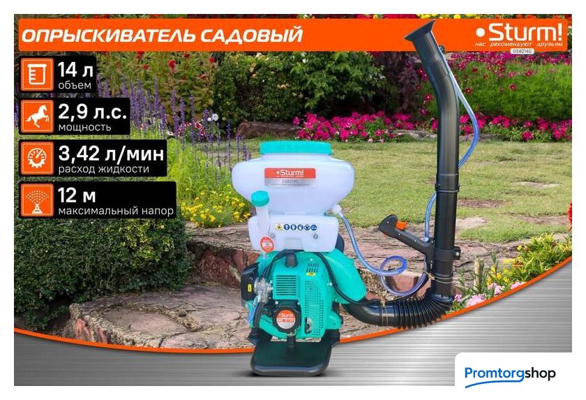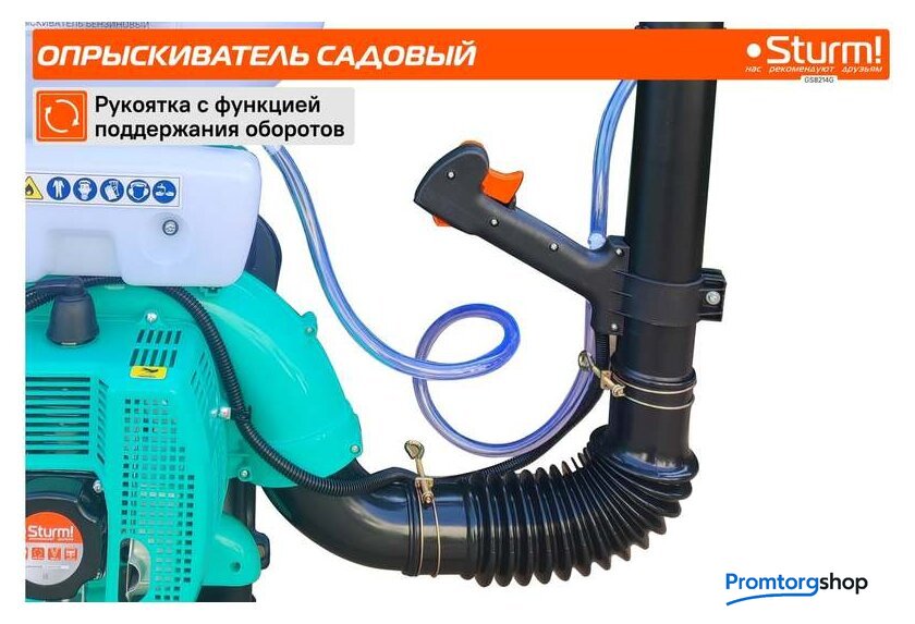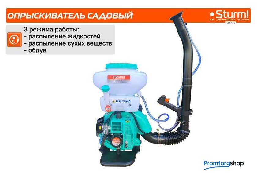 Тип | Садовый опрыскиватель Sturm GS8214G предназначен для распыления сухих смесей, опрыскивания и обдува. Имеет мощный бензиновый двигатель с ручным стартером. Ранцевая оснастка обеспечивает комфорт во время работы. Резервуар для жидкости объемом 14 л обеспечивает длительную работу без дозаправки. Преимущества Sturm GS8214G Бензиновый одноцилиндровый двигатель с воздушным охлаждением; Дальность распыления по горизонтали - 12 м; 3 режима работы: распыление жидкостей, распыление сухих веществ, обдув; Высокая производительность Sturm GS8214G; Ранцевая оснастка - комфорт при работе; Большая наливная горловина облегчает заполнение бака. Дополнительные характеристики Обороты на холостом ходу: 3200 об/мин; Максимальное число оборотов: 7500 об/мин. |