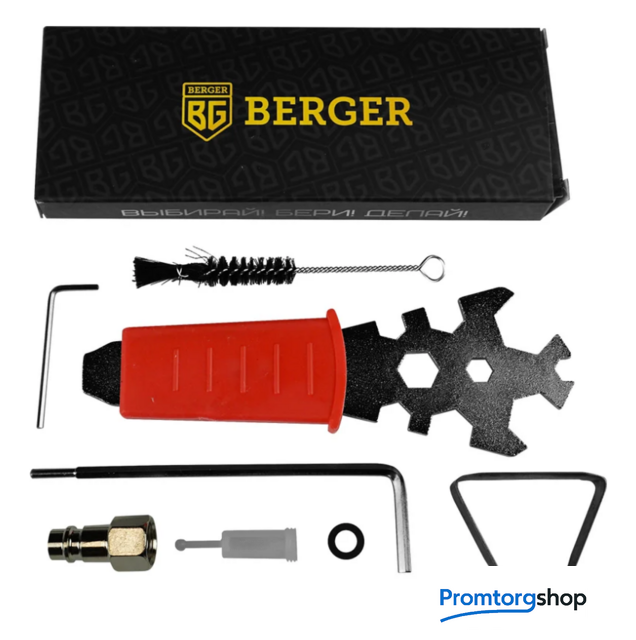 | Комплектация | Пневматический краскопульт Бачок, адаптер-соединитель с резьбы F1/4″ на быстросъём M1/4″ Пластиковый мини-фильтр для ЛКМ Набор ключей для обслуживания краскопульта Щётка для чистки Инструкция по эксплуатации Коробка |