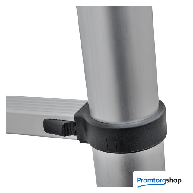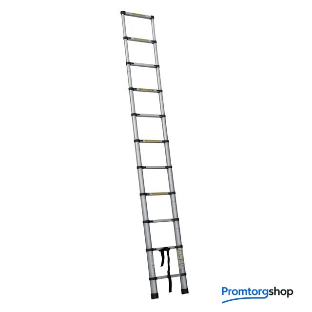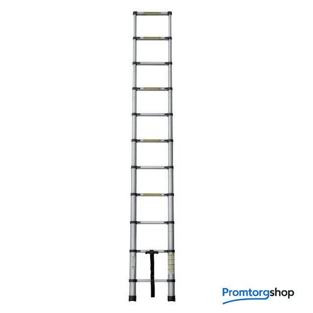 | Тип | Преимуществами раздвижной лестницы является возможность регулировки высоты подъема и компактные размеры в сложенном виде. Максимальная нагрузка телескопической лестницы - 150 кг. Лестницы снабжены ремнем для фиксации в собранном положении. На ступени нанесены предупреждающие надписи Пластиковые противоскользящие башмаки |
