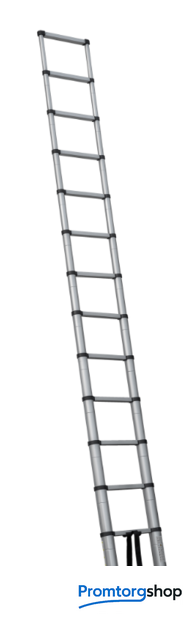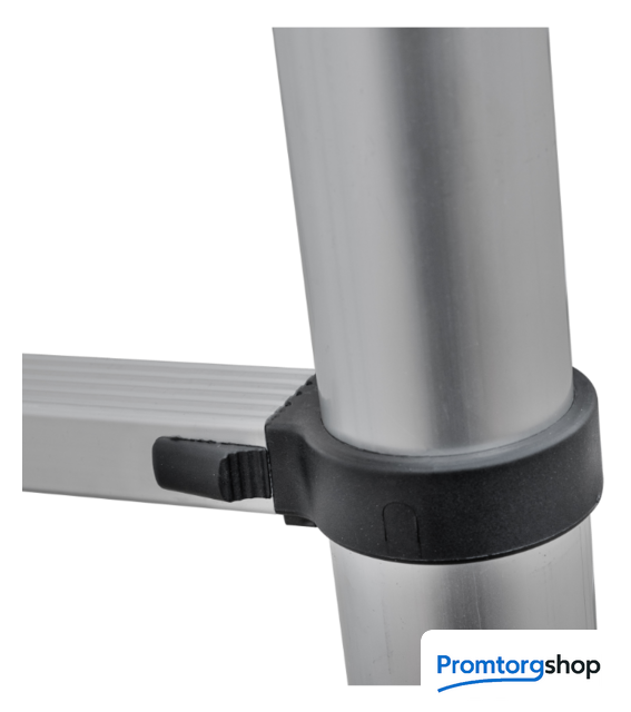 | Тип | Преимуществами раздвижной лестницы является возможность регулировки высоты подъема и компактные размеры в сложенном виде. Максимальная нагрузка телескопической лестницы - 150 кг. Лестницы снабжены ремнем для фиксации в собранном положении. На ступени нанесены предупреждающие надписи Пластиковые противоскользящие башмаки |