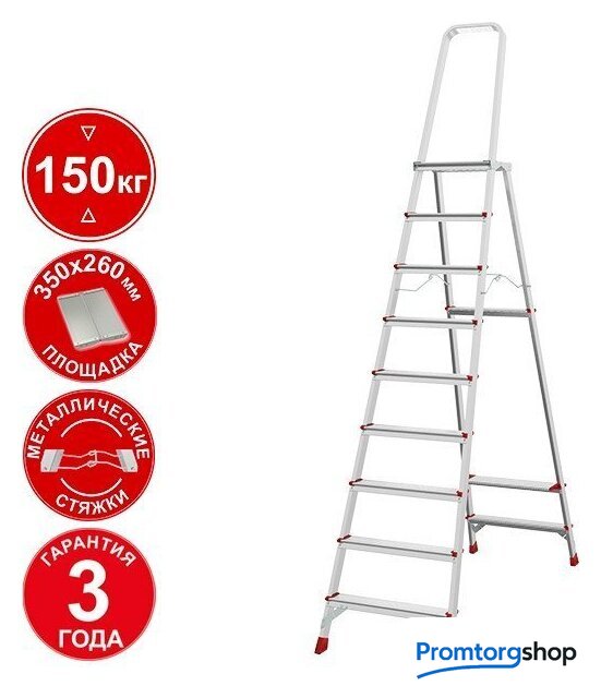 лестница-стремянка, 10 ступеней, алюминий