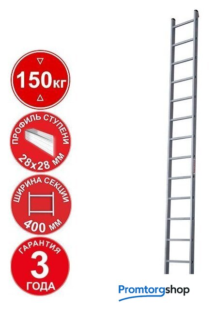 приставная лестница, 15 ступеней, алюминий
