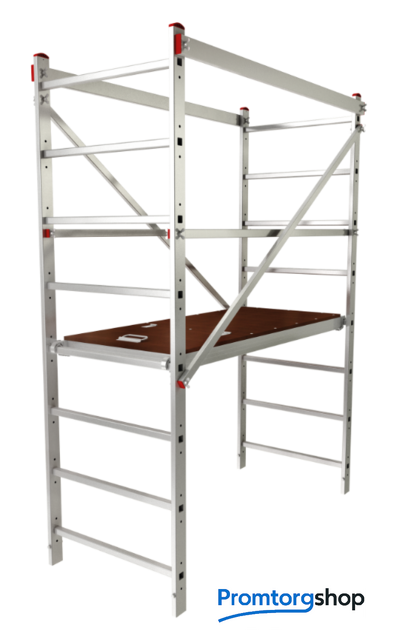 | Тип | Дополнительный комплект для 3411208, разборная. Используется только в комплекте с вышкой-турой NV3451 или NV3411 и дополнительным комплектом NV3421. Легко устанавливается и снимается одним человеком. Все необходимые соединители и крепёж в комплекте. Помост 1,38×0,6 м из ламинированной фанеры со сменой рабочей высоты. Используется как полка или рабочая площадка. Рамная конструкция помоста с закладными крюками и стальными фиксаторами. Увеличенные рифлёные перекладины 28×28 мм для надёжного сцепления. Вальцовочное крепление перекладин. По прочности не уступает сварке. Диагональные алюминиевые стабилизаторы на барашковых винтах создают жёсткую рамную конструкцию. Встроенный крепёж не требует инструмента. |
