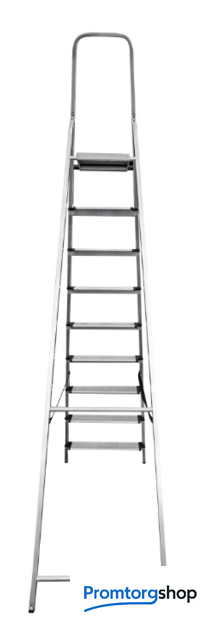 | Тип | лестница-стремянка, складная, неразборная. Высокая прочность и надёжность при небольшом весе изделия. Простота установки и высокий уровень комфорта. Стойки и ступени из экструдированного алюминиевого профиля. Ступени глубиной 130 мм. Рифлёная поверхность ступеней для безопасного подъёма и спуска. Прочное крепление ступеней к боковинам шестью заклёпками для более высокой устойчивости конструкции. Рифлёная площадка из оцинкованной стали. Дуга безопасности 600 мм. Опорные наконечники из прочного пластика для устойчивого положения. Компактность при хранении и транспортировке. Практичность и внимание к каждой детали гарантируют безопасность работы на любой высоте. Страна производства: Россия |