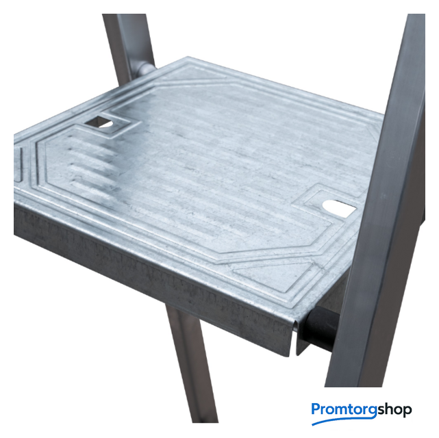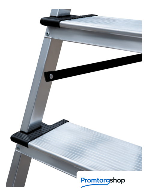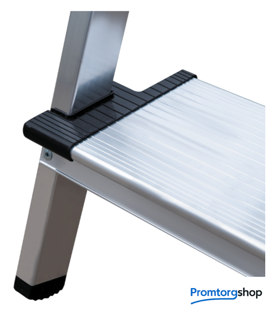 | Тип | лестница-стремянка, складная, неразборная. Высокая прочность и надёжность при небольшом весе изделия. Простота установки и высокий уровень комфорта. Стойки и ступени из экструдированного алюминиевого профиля. Ступени глубиной 130 мм. Рифлёная поверхность ступеней для безопасного подъёма и спуска. Прочное крепление ступеней к боковинам шестью заклёпками для более высокой устойчивости конструкции. Рифлёная площадка из оцинкованной стали. Дуга безопасности 600 мм. Опорные наконечники из прочного пластика для устойчивого положения. Компактность при хранении и транспортировке. Практичность и внимание к каждой детали гарантируют безопасность работы на любой высоте. Страна производства: Россия |