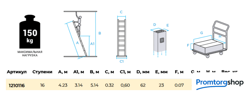 | Тип | приставная лестница, неразборная. Лёгкая и прочная лестница с перекладинами — средство доступа к рабочим местам на высоте для бытового использования. Ширина секции: 320 мм. Рифлёные перекладины 23x23 мм для надёжного сцепления. Профиль стоек: 50×20 мм. Стойки и перекладины из экструдированного алюминиевого профиля. Вальцовочное крепление перекладин. По прочности не уступает сварке. Наконечники стоек сверху и снизу лестницы из прочного пластика. Не скользят и не повреждают поверхность. |