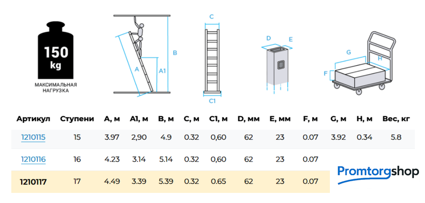 | Тип | приставная лестница, неразборная. Лёгкая и прочная лестница с перекладинами — средство доступа к рабочим местам на высоте для бытового использования. Ширина секции: 320 мм. Рифлёные перекладины 23x23 мм для надёжного сцепления. Профиль стоек: 50×20 мм. Стойки и перекладины из экструдированного алюминиевого профиля. Вальцовочное крепление перекладин. По прочности не уступает сварке. Наконечники стоек сверху и снизу лестницы из прочного пластика. Не скользят и не повреждают поверхность. |