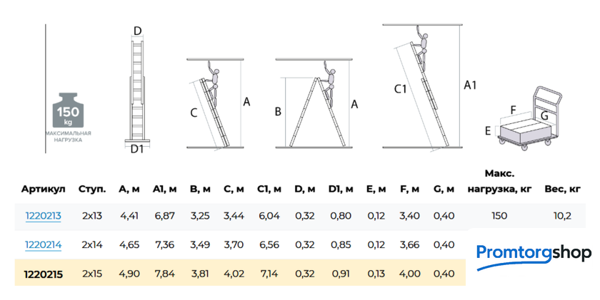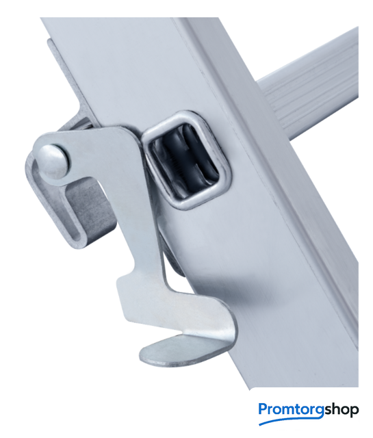 | Тип | лестница секционная, складная. Лёгкая и прочная лестница «3 в 1» для бытового использования: приставная, раздвижная и двухсторонняя стремянка. Ширина верхней секции - 320 мм, ширина нижней секции - 400 мм. Рифлёные перекладины 23x23 мм для надёжного сцепления. Стойки и перекладины из экструдированного алюминиевого профиля. Вальцовочное крепление перекладин. По прочности не уступает сварке. Широкая съёмная опорная траверса стабилизирует конструкцию. 2 зацепа и автоматический фиксатор секции на нужном шаге. Кронштейны соединяют и направляют секции. Пластиковые вставки обеспечивают плотное соединение и улучшают скольжение. Страховочные погодоустойчивые ремни на заклёпках с увеличенной шляпкой. Создают жёсткую конструкцию. Не гниют и не выгорают. Башмаки траверсы из прочного пластика. Не скользят и не повреждают поверхность. |