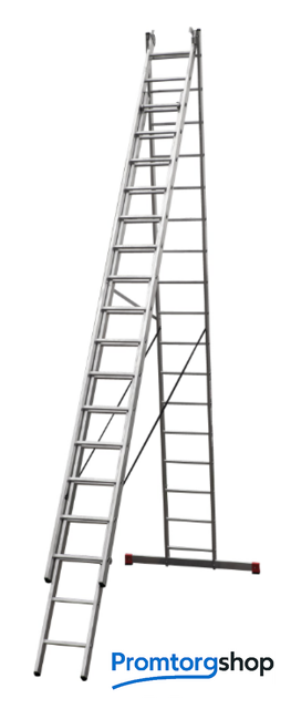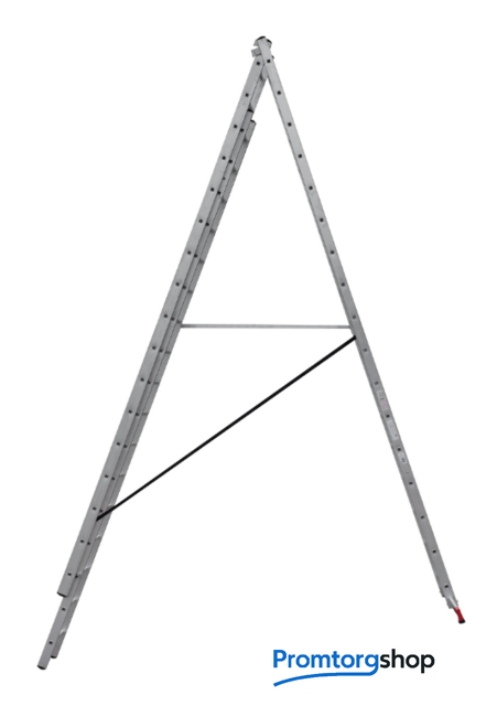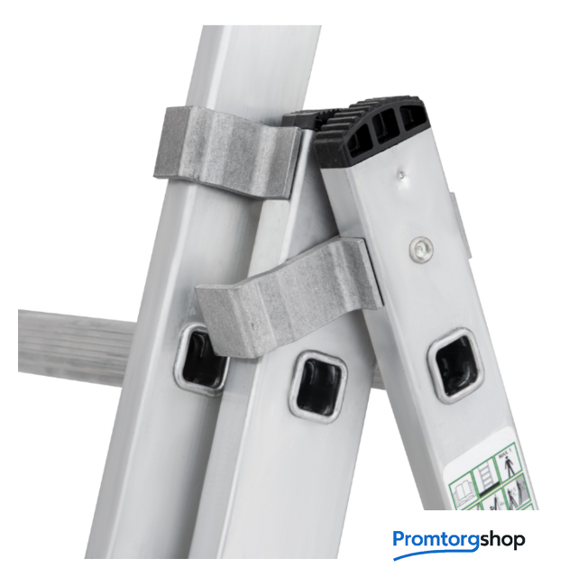 | Тип | лестница секционная, складная. Лёгкая и прочная лестница «7 в 1» для бытового использования: приставная лестница, приставная выдвижная лестница, стремянка, стремянка с выдвинутой секцией, функция «лестничный пролёт» (возможность установки на разноуровневой поверхности), две отдельных приставных лестницы (односекционная и двухсекционная). Ширина верхней секции - 320 мм, ширина нижней секции - 460 мм. Рифлёные перекладины 23x23 мм для надёжного сцепления. Функция «Лестничный марш» (установка на разноуровневой поверхности). Верхняя секция легко снимается для использования в качестве отдельной приставной лестницы. Стойки и перекладины из экструдированного алюминиевого профиля. Вальцовочное крепление перекладин. По прочности не уступает сварке. Алюминиевая стяжка создаёт жёсткий треугольник и фиксирует рабочее положение. 2 зацепа и автоматический фиксатор секции на нужном шаге. Кронштейны соединяют и направляют секции. Пластиковые вставки обеспечивают плотное соединение и улучшают скольжение. Страховочные погодоустойчивые ремни на заклёпках с увеличенной шляпкой. Создают жёсткую конструкцию. Не гниют и не выгорают. Широкая съёмная опорная траверса стабилизирует конструкцию. |