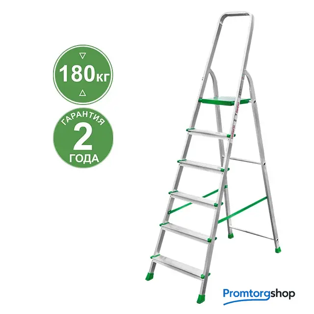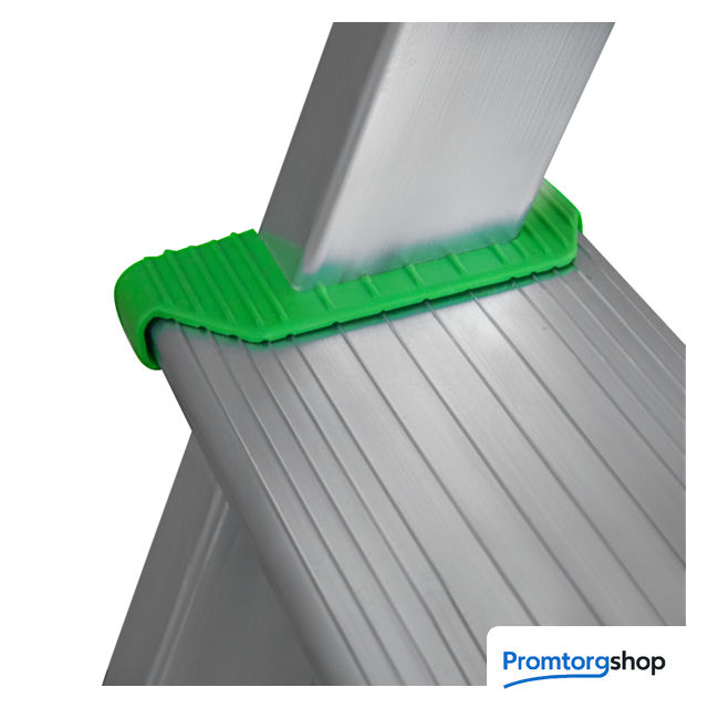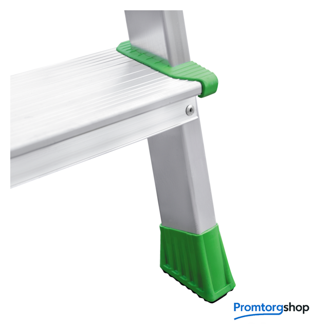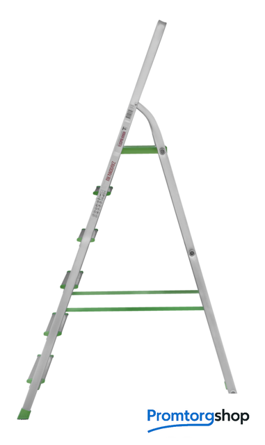 | Тип | лестница-стремянка, складная, неразборная. Улучшенная стремянка для универсального применения. Лёгкая и прочная стремянка для ремонта и уборки. Цельнотянутая усиленная стальная оцинкованная площадка 255×255 мм с порошковой окраской. Устойчива к коррозии, сохраняет чистоту рук и рабочих поверхностей. Стойки и ступени из экструдированного алюминиевого профиля. Рифлёные ступени 80 мм (евростандарт) для надежного сцепления. Профиль заднего каркаса увеличенного сечения. Жёсткость конструкции выше, срок службы дольше. Упор площадки из стального прутка с фиксатором. Не выходит из пазов при сборке. Препятствует повреждению пальцев. Заклёпочное крепление ступеней. Высокая статическая и динамическая прочность. Закруглённые безопасные края ступеней и площадки смягчают контакт с голенью, предотвращают травмы. Пластиковые повторяющие рельеф заглушки ступеней с длительным сроком службы скрывают острые грани и углы. Усиленное крепление стоек заднего каркаса с развальцовкой. Повышает устойчивость стремянки. Страховочные погодоустойчивые ремни на заклёпках с увеличенной шляпкой. Создают жёсткую конструкцию. Не гниют и не выгорают. Дуга безопасности 600 мм. Точка опоры на высоте. Компактно складывается для хранения и транспортировки. В сложенном состоянии занимает мало места. Башмаки из 2х-компонентного пластика с прорезиненной опорой и большим пятном контакта 13 см². Не скользят и не повреждают поверхность. |