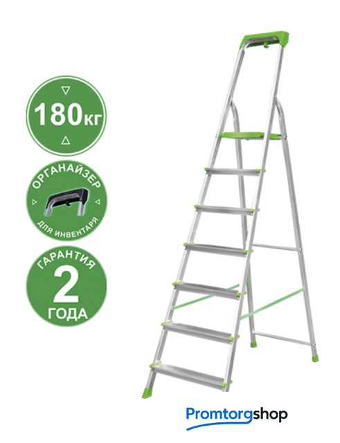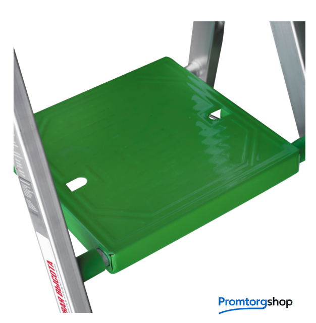 | Тип | лестница-стремянка, складная. Усиленная cтремянка для универсального применения. Инвентарь под рукой при работе. Цельнотянутая усиленная стальная оцинкованная площадка 255x255 мм порошковой окраской. Органайзер с 14 отверстиями под инструмент и крюком для ведра 5 кг. Стойки и ступени из экструдированного алюминиевого профиля. Рифлёные ступени 80 мм (евростандарт) для надежного сцепления. Профиль заднего каркаса увеличенного сечения. Жёсткость конструкции выше, срок службы дольше. Упор площадки из стального прутка с фиксатором. Не выходит из пазов при сборке. Препятствует повреждению пальцев. Заклёпочное крепление ступеней. Высокая статическая и динамическая прочность. Закруглённые безопасные края ступеней и площадки смягчают контакт с голенью, предотвращают травмы. Пластиковые повторяющие рельеф заглушки ступеней с длительным сроком службы скрывают острые грани и углы. Усиленное крепление стоек заднего каркаса с развальцовкой. Повышает устойчивость стремянки. Страховочные погодоустойчивые ремни на заклёпках с увеличенной шляпкой. Создают жёсткую конструкцию. Не гниют и не выгорают. Дуга безопасности 600 мм. Точка опоры на высоте. Компактно складывается для хранения и транспортировки. В сложенном состоянии занимает мало места. Башмаки из 2х-компонентного пластика с прорезиненной опорой и большим пятном контакта 13 см2. Не скользят и не повреждают поверхность. |