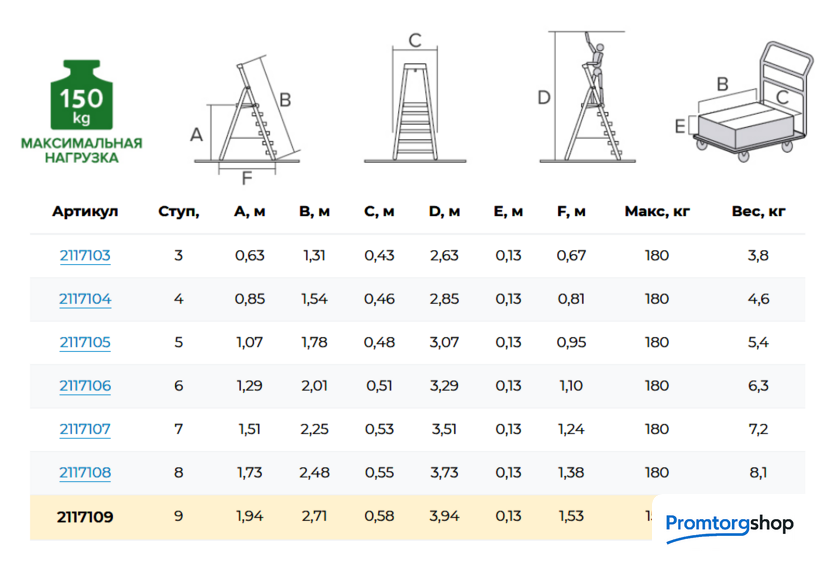| Максимальная нагрузка | 150 кг |