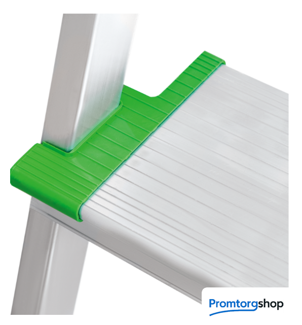 | Тип | лестница-стремянка,складная. Усиленная стремянка для универсального применения. Ноги не устают при длительной работе. Каждая ступень — рабочая площадка глубиной 130 мм. Меньше усталости при длительной работе. Цельнотянутая усиленная стальная оцинкованная площадка 255x255 мм с порошковой окраской. Стойки и ступени из экструдированного алюминиевого профиля. Профиль заднего каркаса увеличенного сечения. Жёсткость конструкции выше, срок службы дольше. Упор площадки из стального прутка с фиксатором. Не выходит из пазов при сборке. Препятствует повреждению пальцев. Заклёпочное крепление ступеней. Высокая статическая и динамическая прочность. Закруглённые безопасные края ступеней и площадки смягчают контакт с голенью, предотвращают травмы. Пластиковые повторяющие рельеф заглушки ступеней с длительным сроком службы скрывают острые грани и углы. Усиленное крепление стоек заднего каркаса с развальцовкой. Повышает устойчивость стремянки. Страховочные погодоустойчивые ремни на заклёпках с увеличенной шляпкой. Создают жёсткую конструкцию. Не гниют и не выгорают. Дуга безопасности 600 мм. Точка опоры на высоте. Компактно складывается для хранения и транспортировки. В сложенном состоянии занимает мало места. Башмаки из 2х-компонентного пластика с прорезиненной опорой и большим пятном контакта 13 см2. Не скользят и не повреждают поверхность. |