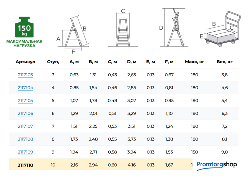 | Тип | лестница-стремянка,складная. Усиленная стремянка для универсального применения. Ноги не устают при длительной работе. Каждая ступень — рабочая площадка глубиной 130 мм. Меньше усталости при длительной работе. Цельнотянутая усиленная стальная оцинкованная площадка 255x255 мм с порошковой окраской. Стойки и ступени из экструдированного алюминиевого профиля. Профиль заднего каркаса увеличенного сечения. Жёсткость конструкции выше, срок службы дольше. Упор площадки из стального прутка с фиксатором. Не выходит из пазов при сборке. Препятствует повреждению пальцев. Заклёпочное крепление ступеней. Высокая статическая и динамическая прочность. Закруглённые безопасные края ступеней и площадки смягчают контакт с голенью, предотвращают травмы. Пластиковые повторяющие рельеф заглушки ступеней с длительным сроком службы скрывают острые грани и углы. Усиленное крепление стоек заднего каркаса с развальцовкой. Повышает устойчивость стремянки. Страховочные погодоустойчивые ремни на заклёпках с увеличенной шляпкой. Создают жёсткую конструкцию. Не гниют и не выгорают. Дуга безопасности 600 мм. Точка опоры на высоте. Компактно складывается для хранения и транспортировки. В сложенном состоянии занимает мало места. Башмаки из 2х-компонентного пластика с прорезиненной опорой и большим пятном контакта 13 см2. Не скользят и не повреждают поверхность. |