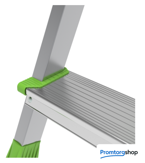 | Тип | лестница-стремянка, складная, неразборная. Усиленная стремянка для универсального применения. Удобная опора и большой радиус работы на высоте. Стойки из стального профиля с порошковой окраской, ступени из экструдированного алюминиевого профиля. Увеличенная дуга безопасности 800 мм. Точка опоры на расстоянии вытянутой руки. Большая алюминиевая складная площадка 350×260 мм. Пространство для боковых перемещений. Прочность и долговечность стального каркаса. Устойчива к механическим деформациям и прогибам. Компактно складывается для хранения и транспортировки. Длина в сложенном положении не превышает 1,15 м. Порошковая окраска стоек предохраняет от коррозии, сохраняет чистоту рук и рабочих поверхностей. Рифлёные ступени 80 мм (евростандарт) для надежного сцепления. Заклёпочное крепление ступеней. Высокая статическая и динамическая прочность. Закруглённые безопасные края ступеней и площадки смягчают контакт с голенью, предотвращают травмы. Пластиковые повторяющие рельеф заглушки ступеней с длительным сроком службы скрывают острые кромки и углы. Дополнительная опорная ступень на заднем каркасе стабилизирует стремянку. Башмаки из 2х-компонентного пластика с прорезиненной опорой и большим пятном контакта 13,5 см2. Не скользят и не повреждают поверхность. |