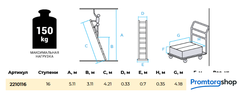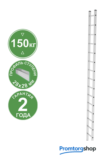 | Тип | приставная лестница. Усиленная лестница для универсального использования снаружи и внутри помещений. Ширина секции: 340 мм. Профиль стоек: 71×23 мм. Увеличенные рифлёные перекладины 28×28 мм для надёжного сцепления. Наконечники стоек из прочного пластика сверху и снизу лестницы. Широкая опорная траверса стабилизирует конструкцию. Вальцовочное крепление перекладин. По прочности не уступает сварке. Башмаки траверсы из 2х-компонентного пластика с прорезиненной опорой. Не скользят и не повреждают поверхность. |