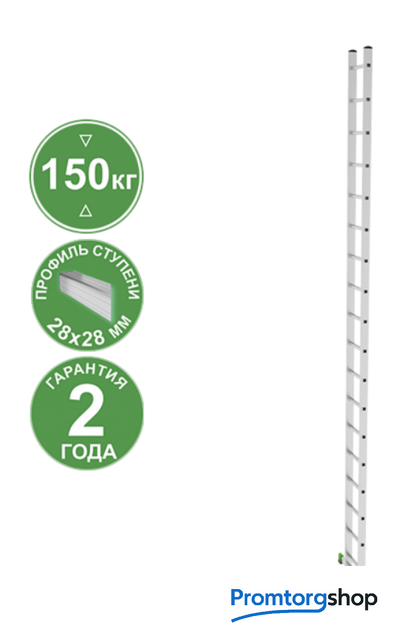 | Тип | приставная лестница. Усиленная лестница для универсального использования снаружи и внутри помещений. Ширина секции: 340 мм. Профиль стоек: 71×23 мм. Увеличенные рифлёные перекладины 28×28 мм для надёжного сцепления. Наконечники стоек из прочного пластика сверху и снизу лестницы. Широкая опорная траверса стабилизирует конструкцию. Вальцовочное крепление перекладин. По прочности не уступает сварке. Башмаки траверсы из 2х-компонентного пластика с прорезиненной опорой. Не скользят и не повреждают поверхность. |
