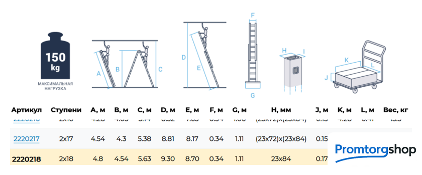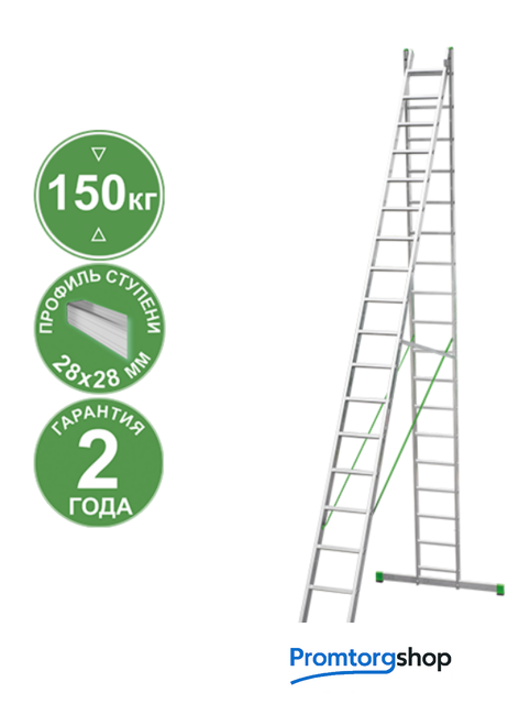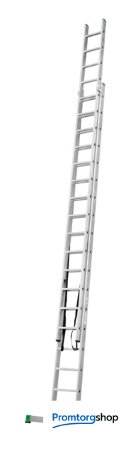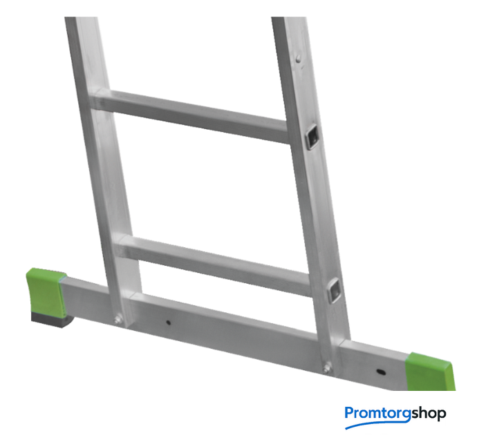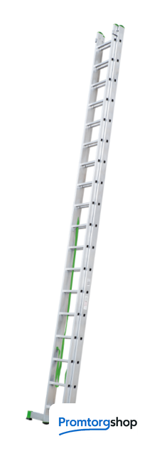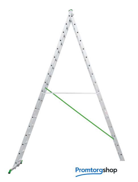 | Тип | лестница секционная, складная. Усиленная лестница с перекладинами «3 в 1»: приставная лестница, приставная раздвижная лестница, стремянка. Для краткосрочных работ и частного применения. Сделана из экструдированного алюминия. Высокая прочность при лёгком весе. Ширина верхней секции - 340 мм, ширина нижней секции - 400 мм. 2х-компонентный пластик на наконечниках траверсы. Большое (1200 мм2) пятно контакта. Не скользит и не повреждает поверхность. Съёмная траверса стабилизирует конструкцию. Страховочные ремни на заклёпках с увеличенной шляпкой. Алюминиевая стяжка в положении «Стремянка» создает жёсткую конструкцию и фиксирует рабочее положение. Вальцовочное соединение перекладин. По прочности не уступает сварке. Увеличенные рифлёные перекладины 28x28 мм. 2 зацепа и автоматический фиксатор секции на нужном шаге. |
