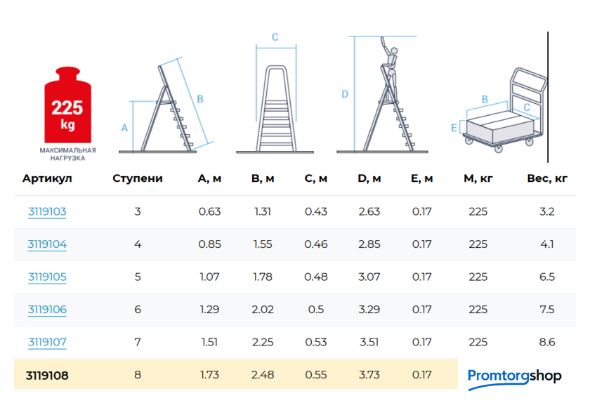 | Ширина | 55 см. Ширина ступеньки 13 см |