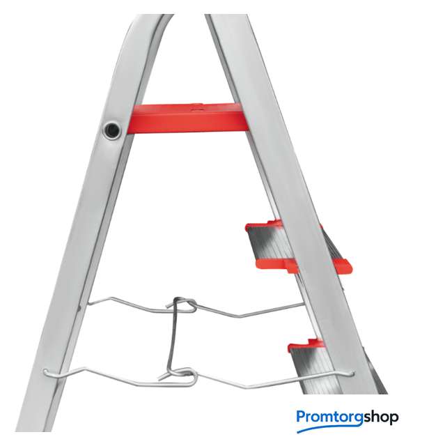| Тип | лестница-стремянка,складная, неразборная. Профессиональная стремянка с максимальной нагрузкой 225 кг, с широкими комфортными ступенями 130 см и металлическим надежными стяжками. широкие ступени глубиной 130 мм жесткие металлические стяжки для надежной фиксации в рабочем положении повышенная прочность и надёжность при небольшом весе изделия ступени и стойки из прессованных алюминиевых профилей увеличенного сечения рифлёная поверхность ступеней для безопасного подъёма и спуска прочное крепление ступеней к боковинам шестью заклёпками для более высокой устойчивости конструкции безопасная рифлёная площадка из оцинкованной стали с порошковой покраской дуга безопасности 600 мм опорные наконечники из прочного пластика для устойчивого положения Компактность при хранении и транспортировке |