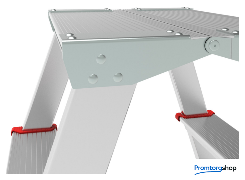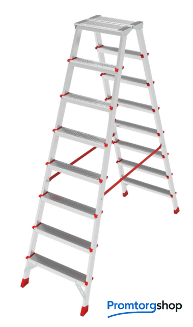 | Тип | лестница-стремянка,складная, неразборная. Профессиональная стремянка для интенсивного использования Увеличенная площадка 260×350 мм. Ориентация ступеней на обе стороны позволяет работать, не переставляя стремянку и тем самым экономя время. Повышенная прочность и надёжность при небольшом весе изделия. Простота установки и высокий уровень комфорта. Стойки и ступени из экструдированных алюминиевых профилей увеличенного сечения. Ступени глубиной 80 мм увеличенной толщины. Рифлёная поверхность ступеней для безопасного подъёма и спуска. Прочное крепление ступеней к боковинам шестью заклёпками для более высокой устойчивости конструкции. Прочные страховочные ремни. Опорные наконечники из прочного пластика для устойчивого положения. Компактность при хранении и транспортировке. Практичность и внимание к каждой детали гарантируют безопасность работы на любой высоте. |