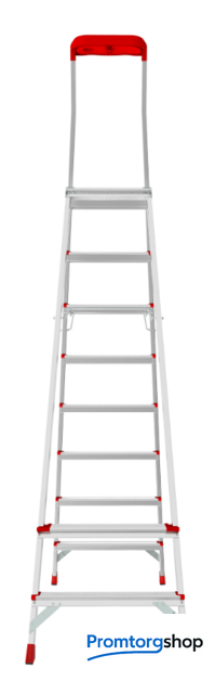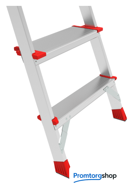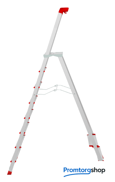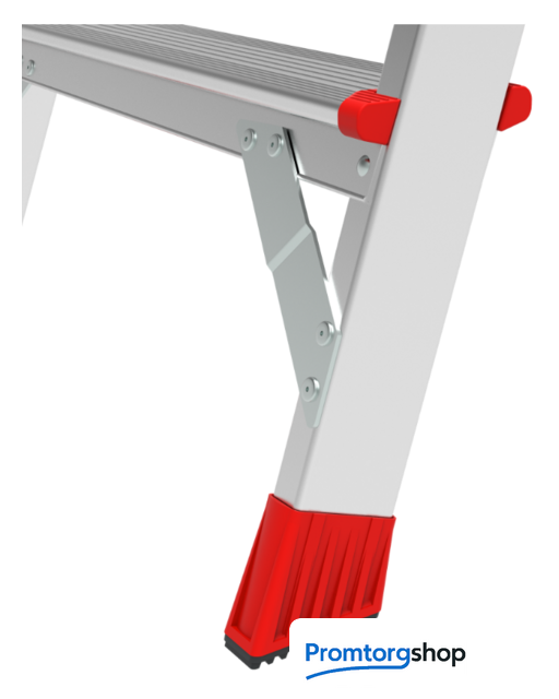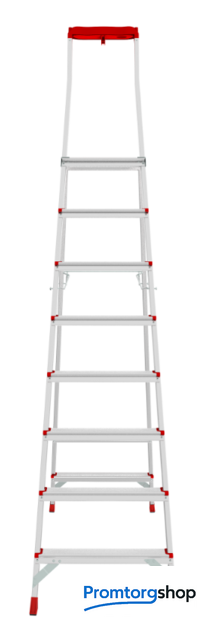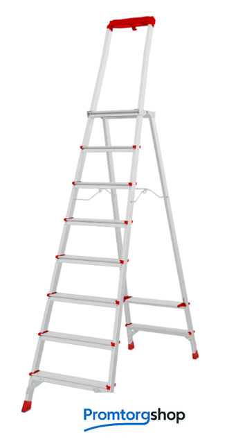 | Тип | лестница-стремянка,складная, неразборная. Профессиональная стремянка для интенсивного использования с увеличенным радиусом работы на высоте. Инвентарь всегда под рукой. Органайзер с 14 отверстиями под инструмент и крюком для ведра 10 кг. Большая алюминиевая складная площадка 350x260 мм. Пространство для боковых перемещений. Рифлёные ступени 80 мм (евростандарт) для надёжного сцепления. Стойки и ступени из экструдированного алюминиевого профиля. Заклёпочное крепление ступеней. Высокая статическая и динамическая прочность. Пластиковые повторяющие рельеф заглушки ступеней с длительным сроком службы скрывают острые грани и углы. Стальная стяжка создает жёсткую конструкцию и фиксирует рабочее положение. Распорки-стабилизаторы под нижней ступенью создают жёсткую рамную конструкцию. Место для отдыха и дополнительная опорная ступень на заднем каркасе. Стабилизируют стремянку. Башмаки из 2х-компонентного пластика с прорезиненной опорой. Большое (15 см?) пятно контакта. Не скользят и не повреждают поверхность. |